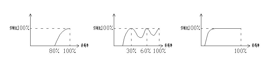 答:在參數(shù)不變的情況下,單通道產(chǎn)品在80%左右負荷率時就不引射了。多通道是分段工作,引射比變動很大,而聯(lián)調型是維持大范圍高效的圓滑型過度。三者的特性曲線如下:
